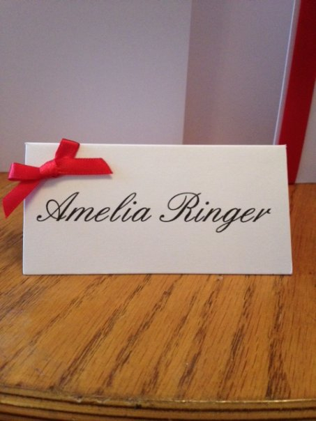 I haven't finished them yet, the bows were brought off ebay already tied so saved me a job and just printed names straight on the cards but I used publisher not word then stuck the bows on with double sided tape. I have done the people I know are coming but not sent out invites yet lol xxx
