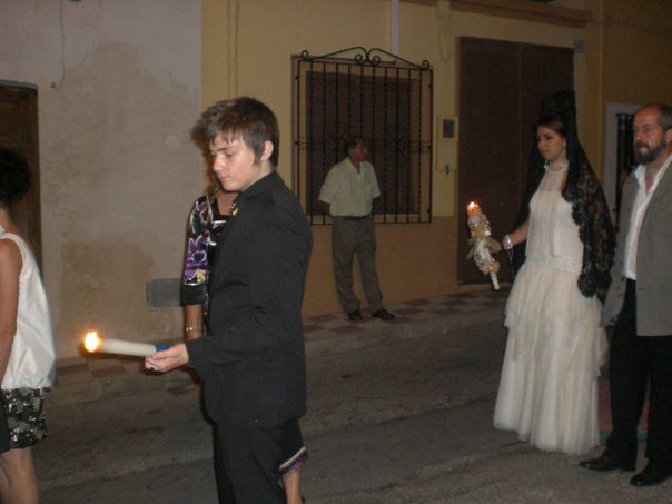 I am trying to find a good picture of the Santa Barbara celebrations we were at last summer, the festeras wore black lace veils. These were quite long ones, made to be worn with a comb as it was a very religious and somber procession but I have seen shorter ones. Obviously it's up to you, a long one could look amazing, especially with that hairpiece!