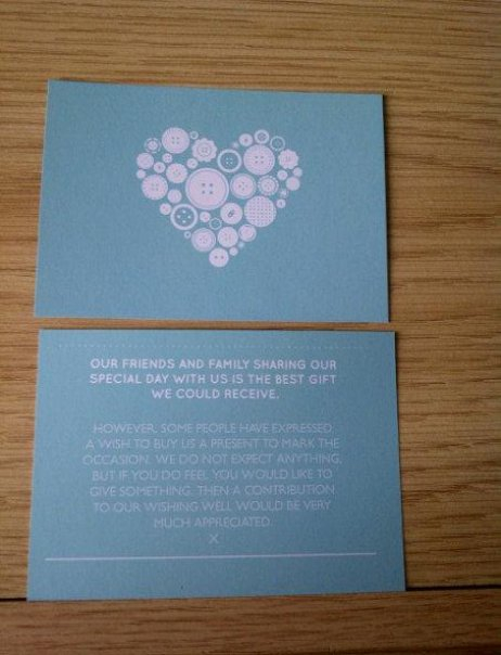 Clare your stationery looks amazing, I love love love the table numbers with the number of dots on the button! Only thing I've noticed though is your postbox sign has a spelling mistake on it, it's 'generosity' not 'genorosity' - sorry!! But at least you have plenty of time to correct it :-)