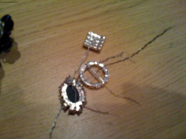 Try to keep positive hun - I almost gave up so many times. I had to leave it and not even look at it for a few weeks at a time. I tried not to use the clasp either so I didnt have them coming off half way through the day. I used the tiniest wire (will look up the code when monster boy isnt around otherwise he will pull everything apart) - I used this wire to either loop through the tiniest hole or lay across the brooch/piece in a way it couldnt be seen and only if there was no other way then did I use clasp. I then attached the thin wire to thicker wire that was the right thickness to give me the strength and finish I was looking for.