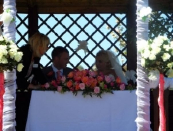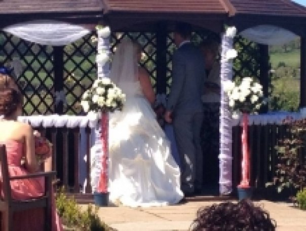 Well..........We had the most amazing day the weather was so perfect too! the day before was horrendous wind and rain my mum was out in the bad conditions until midnight decorating the gazebo thing where we said our vows however the following day it was glorious sunshine it was beautiful.
