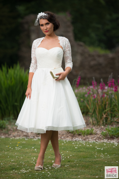 Timeless Chic Elizabeth Polka Dot Tea Length Spot Tulle & Lace Wedding Dress With Jacket  (13)-3.png