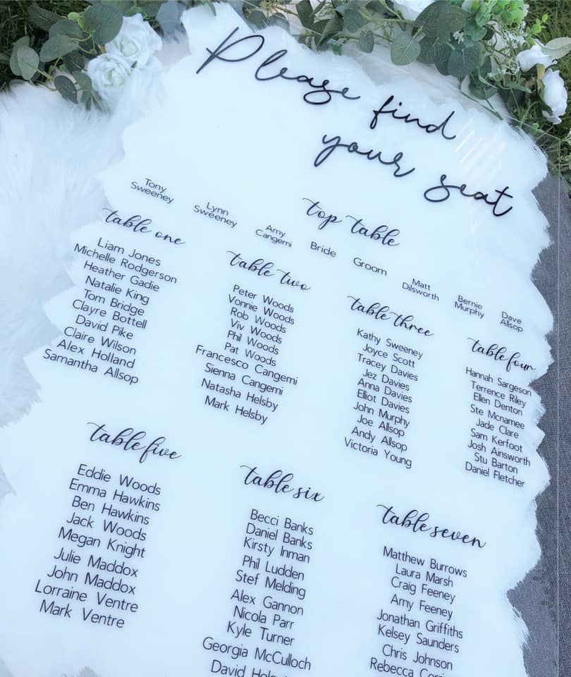 We offer a wide range of wedding stationery from table seating plans to wedding dress hangers, and everything in between! We also have five bespoke wedding sign packages which can be tailored to your needs. We will work with you from start to finish, ensuring that all of your ideas are brought to life and you have the perfect stationery for your special day. We have a variety of designs and colours available, which allows us to match your stationery to your wedding theme!