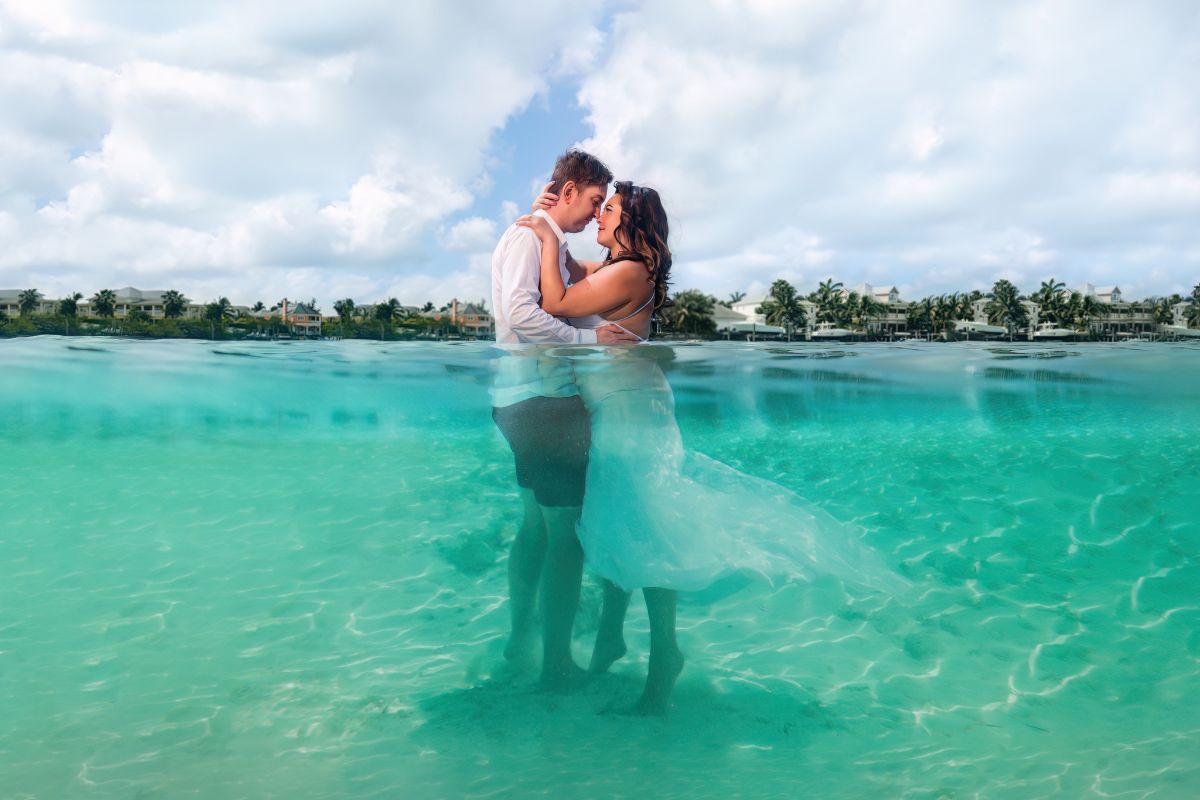 A behind the scene of a wedding in The Bahamas