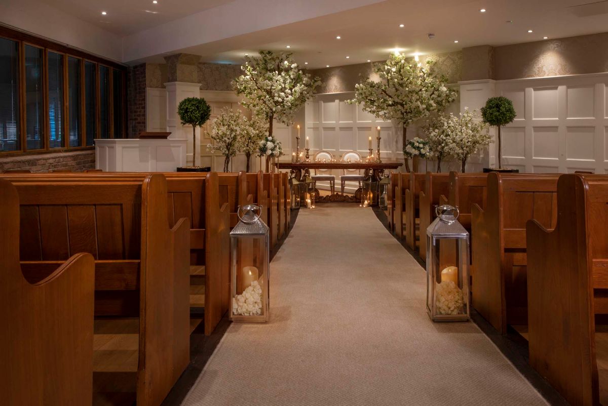 The venue offers several elegant event spaces for weddings of all sizes. Couples can say 'I do' in the designated chapel or outdoors among the flourishing blooms of the Walled Garden. Afterwards, they can proceed indoors to continue the celebrations and enjoy delicious dining in the Hampshire Suite, Gatsby Ballroom or Grand Ballroom.